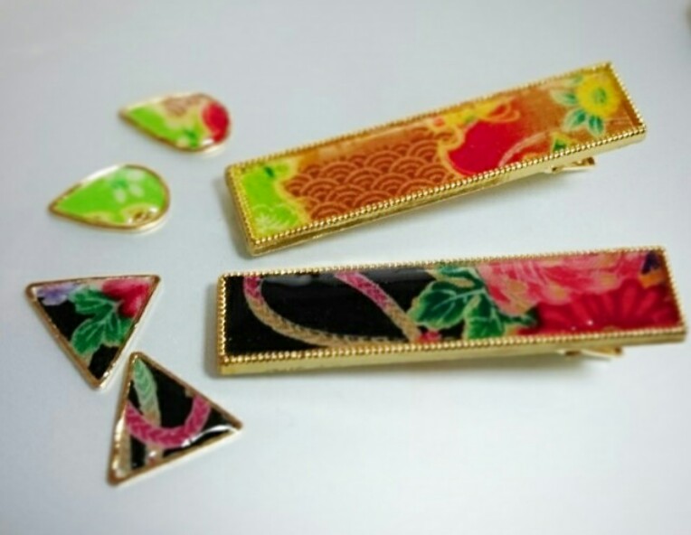 ヘアクリップとピアス(か、イヤリング)をお揃いで。
