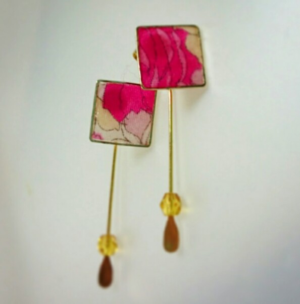 昨日作ったパーツにピアス金具をつけて、キャッチにぷらぷらするやつ付けてみた。