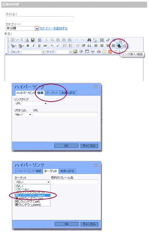 この方法で設定したら新しいウィンドウで開くようになると思うけどなー。