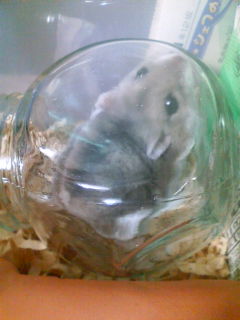 ケージにガラス瓶いれてやったら大喜びで入る。